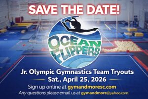 Gymnastics & More has been in the North Myrtle Beach/Little River area for over 21 years. Each year, one of our competitive gymnastics teams, The Ocean Flippers, have won a South Carolina State Team Title. Please contact us for more information on joining this wonderful family of gymnasts, dancers, cheerleaders and more!